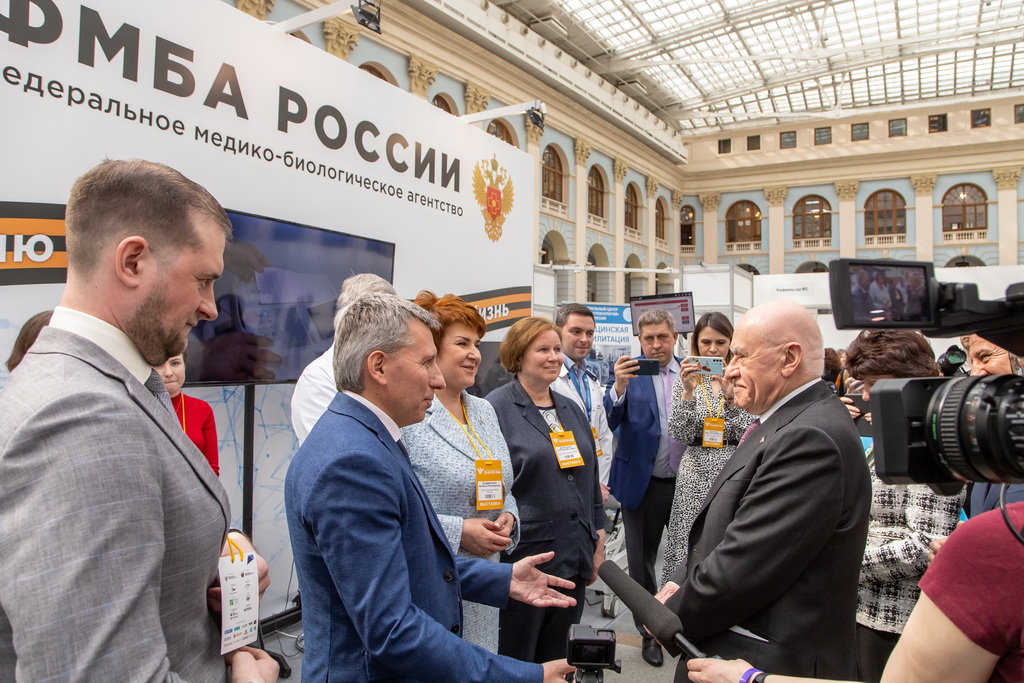 В этом году традиционно учреждения Федерального медико-биологического агентства продемонстрировали свои достижения в сфере инновационных технологий, импортозамещения, экспорта медицинских услуг, а также оказания высокотехнологичной медицинской помощи на освобождённых территориях ДНР. Программа экспозиции ФМБА России прошла под лозунгом «Zа Россию, Zа жизнь». В рамках объединённого стенда были представлены ведущие организации Агентства: Клиническая больница № 85 ФМБА России, Федеральный Центр мозга и нейротехнологий ФМБА России, Институт иммунологии ФМБА России, ГНЦ ФМБЦ им. А.И. Бурназяна ФМБА России, Центр по проектированию и развитию объектов ядерной медицины ФМБА России, Фармзащита ФМБА России, Сибирский окружной медицинский центр ФМБА России и Центр стратегических инициатив ФМБА.